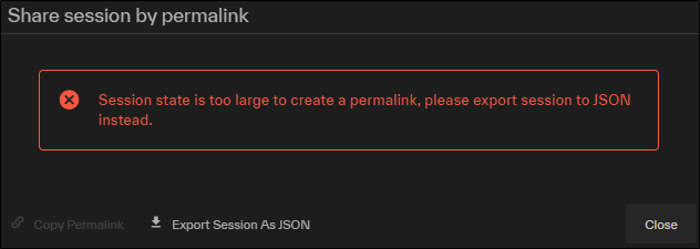 Export Session as JSON Saves a JSON file to your local PC.