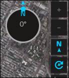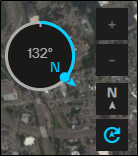 You can use the map compass to get the best view of a location. The map compass appears next to the zoom tool and indicates the current angle of rotation. The map compass rotates everything visible in the viewport, including imagery, basemaps, areas, and more.