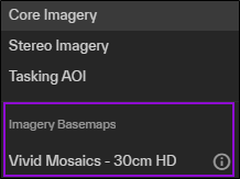 Vivid Mosaic imagery basemaps in the Imagery panel.
